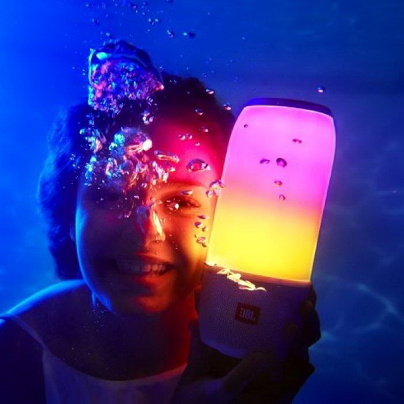 Кроме того, владелец JBL Pulse 3 имеет возможность настраивать индивидуальное свечение колонки через бесплатное приложение. Водонепроницаемый корпус не боится влаги и пыли, JBL Pulse 3 даже можно «уронить» в воду - стандарт IPX7 допускает погружение до 30 см не более, чем на 30 минут. К сожалению, воспроизведение музыки при таких условиях невозможно, так как Bluetooth не работает в воде.