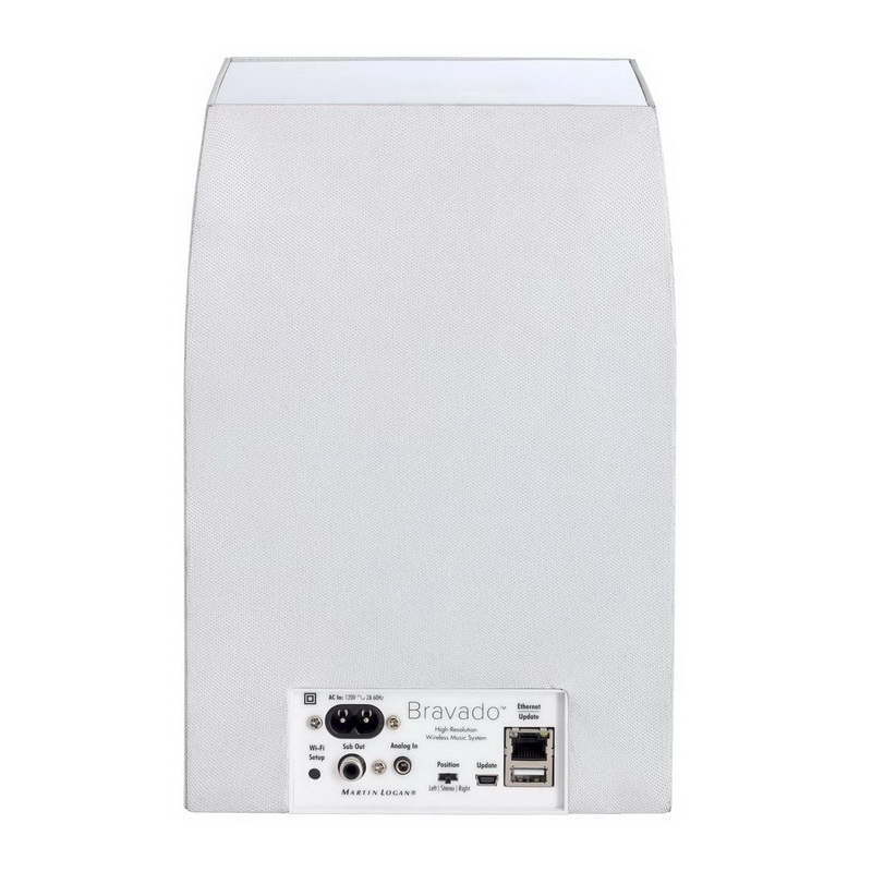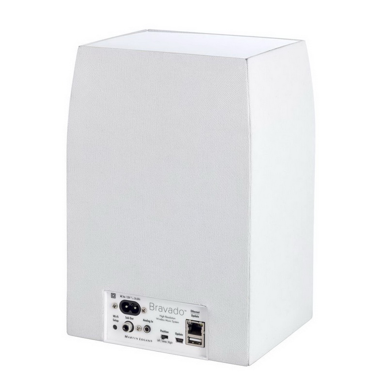 Прежде всего, модель Martin Logan Bravada – превосходный комнатный настольный (полочный и т. д.) спикер. Как всегда, работая на грани технологии и искусства, Martin Logan разработал Bravado с тем, чтобы эта модель вписалась в любое окружение. Продемонстрирован чистый и скромный подход к дизайну. Оформление в черной или белой акустически прозрачной ткани с функциональной верхней плоскостью почти пирамидального корпуса дополняется вертикальной линией элементов управления – все просто и лаконично.
