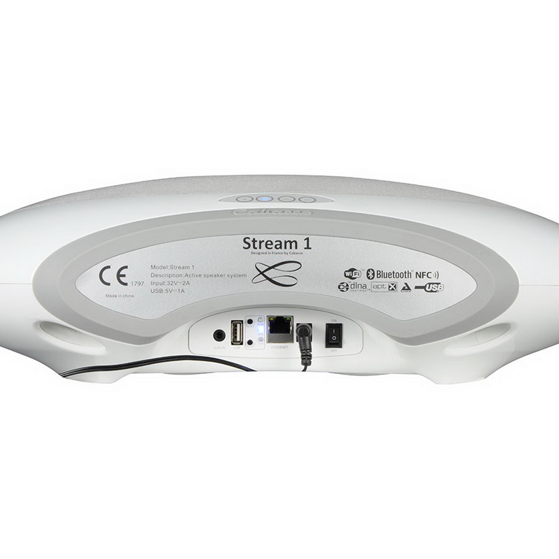 Внутри у Stream 1 установлены динамики, созданные по технологии SCS Cabasse: один фронтальный 2-полосный коаксиальный драйвер, объединивший 8-см среднечастотник и 29-мм твитер, плюс тыловой: 17-см НЧ-динамик с двойной звуковой катушкой. На них работают усилители: НЧ: 2 x 20Вт и СЧ/ВЧ: 2 x 10Вт. Одна Stream 1 обеспечивает моно звук высокого качества, но установив пару таких систем можно запрограммировать их на работу в стерео режиме. В большом доме можно организовать мультирумную систему, распределив несколько Stream 1 по зонам и закрепив за каждой из них свой источник аудио.