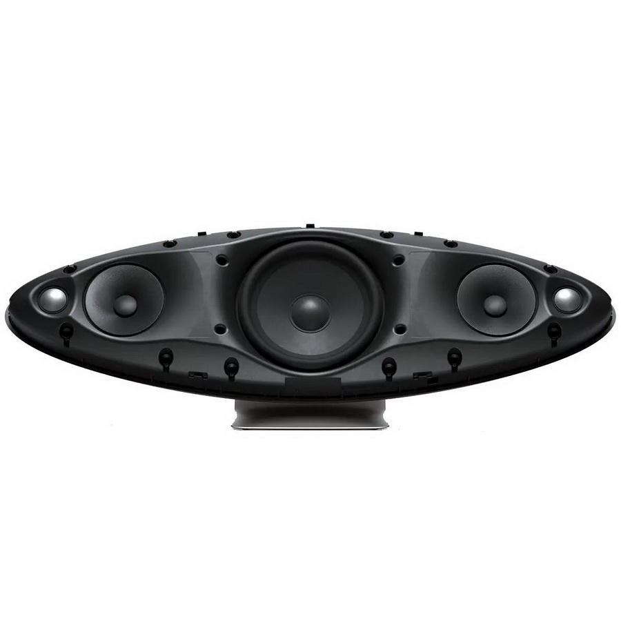 Беспроводная колонка Bowers & Wilkins Zeppelin McLaren Edition сохранила такую же компоновку динамиков, как и у ее предшественницы: в центральной части лицевой панели установлен 150 мм вуфер с оптимизированной с целью минимизации влияния вибраций на корпус конструкцией, слева и справа от которого расположены СЧ-драйверы и твитеры левого и правого каналов. По сути, это полноценная стереосистема в одном корпусе. По краям фронтальной панели установлены механически развязанные с корпусом 25 мм твитеры с двойными алюминиевыми купольными мембранами, позаимствованные у серии B&W 600 Anniversary Edition, а 90 мм СЧ-драйверы используют технологию фиксированного подвеса FST, которая применяется в премиальных линейках B&W, в том числе – серии 800 Diamond. Суммарная мощность встроенных усилителей достигает 240 Вт.