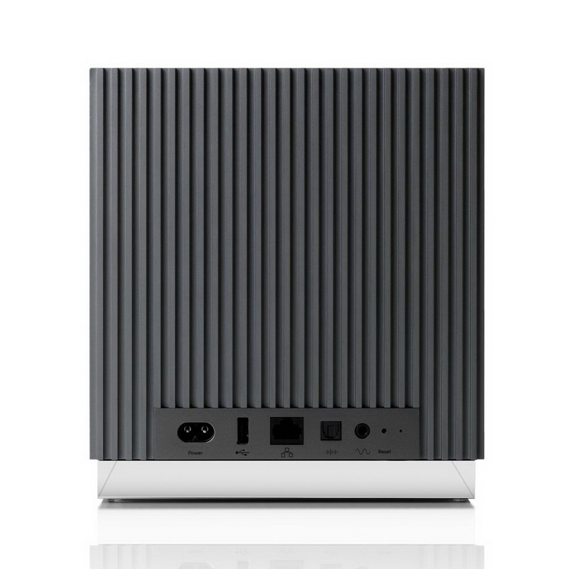 Корпус тоже, как говорится, «внушает» – он полностью сделан из алюминия, а массивный задний теплоотводящий радиатор не только обеспечивает комфортные условия для работы выходных каскадов усилителя и процессора, но и содержит антенну, гарантирующую уверенный прием сигнала. Вес компонента превышает 11 килограммов! Коммутационные возможности очень широки, включая как беспроводные, так и физические каналы. Разумеется, основным сценарием эксплуатации, скорее всего, будет беспроводная интеграция в домашнюю сеть по Wi-Fi либо многокомнатную инсталляцию по протоколу Apple Airplay или Google Chromecast, однако не будем забывать и про проводные способы подключения.