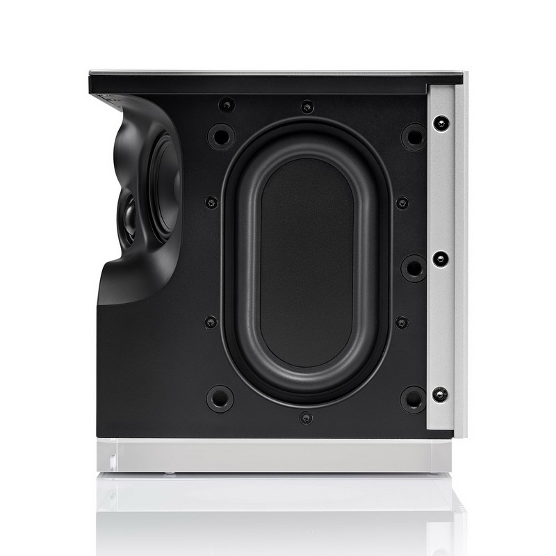 Достаточно поместить колонку в угол просторного помещения, и она сможет насытить его на удивление объёмным звуком с мощным басом. Ориентированные чуть в сторону от центральной линии твитеры и среднечастотные динамики расширяют диаграмму направленности, а овальный низкочастотный динамик, нагруженный на сдвоенный пассивный излучатель на боковых панелях, добавляет напора в нижней октаве. Корпус колонки выточен из алюминия и служит надежной механической платформой для пяти излучателей, также разработанных Focal, а задняя стенка выполняет роль пассивного охлаждающего радиатора для процессора и усилителей. Здесь их установлено пять штук – по 50 Ватт для двух пищалок и двух СЧ-драйверов, басовик же раскачивается отдельным 100-ваттным модулем. Общая максимальная мощность всех встроенных усилителей составляет 300 Ватт.