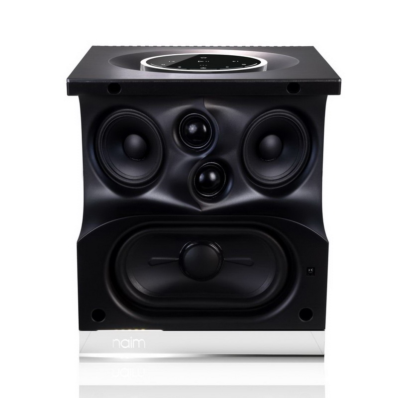 Акустическая часть модели является плодом совместной работы инженеров британской компании и специалистов из французской Focal, создавших динамики специально для Naim Mu-so. Покупатель получает, по сути, стереофоническую активную трехполосную систему, заключенную в единый корпус. Набор излучателей включает два твитера с мягким куполом, два круглых среднечастотных драйвера, нагруженных каждый на свой демпфированный объем, и два овальных НЧ-динамика в фазоинверсном оформлении (длинная труба скрыта внутри корпуса). В движение динамики приводятся отдельными усилителями мощности по 75 Ватт каждый, таким образом, суммарная потенциальная мощность установленных в Naim Mu-so усилителей составляет 450 Ватт. Очень внушительно для таких размеров, хотя, конечно, в реальной работе весь этот запас задействован вряд ли будет.