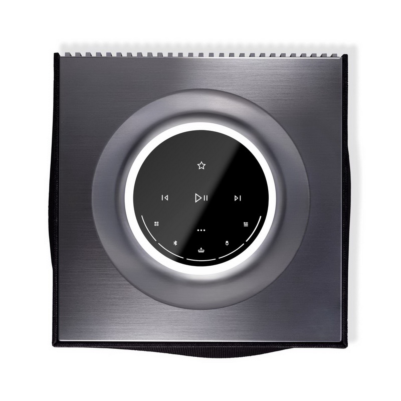 Naim Mu-So Qb 2nd – квадратная акустика, которая уверенно впишется в любой интерьер, за счет своего лаконичного дизайна. Цветовое оформление гриля (сетки) по дефолту темно-серое, но за дополнительные средства Вы можете сменить его на оливковый, либо синий цвет. Корпус устройства выточен из цельного куска алюминия, который отлично отполирован, прям до идеала. Сразу посмотрев на девайс, понятно, что это изделие премиального сегмента. Тут все продумано и эргономично. Наверху акустики расположилось комбинированное колесо регулировки громкости, которое по совместительству является экраном управления. На этом одноцветном экране можно увидеть уровень громкости, а также выбор интерфейсов подключения.