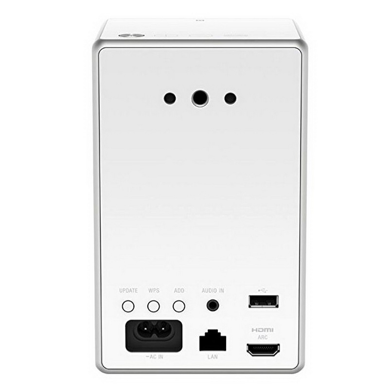 Отсутствие в вашем арсенале Wi-Fi-роутера может компенсироваться подводки типового кабельного Ethernet-шнура. Специальное гнездо имеется аккурат в тыльной стороне звукоизлучающего устройства. Ну а ежели с этим проблем нет, то прелести сертификата DLNA, наличие поддержки Google Cast и сервиса Spotify должны обрадовать. Помимо этого, тут наличествуют разъемы: USB типа «А», HDMI с ARC и 3.5-мм стерео мини-джек. Через любой из представленных интерфейсов можно законнектить инвентарь и транслировать сигналы. Частотный диапазон у не слишком больших колонок более чем солидный – от 20 до 20.000 Гц.