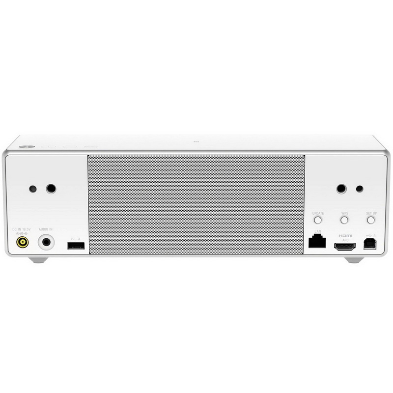 Отсутствие в вашем арсенале Wi-Fi-роутера может компенсироваться подводки типового кабельного Ethernet-шнура. Специальное гнездо имеется аккурат в тыльной стороне звукоизлучающего устройства. Ну а ежели с этим проблем нет, то прелести сертификата DLNA, наличие поддержки Google Cast и сервиса Spotify должны обрадовать. Помимо этого, тут наличествуют разъемы: USB типа «А», HDMI с ARC и 3.5-мм стерео мини-джек. Через любой из представленных интерфейсов можно законнектить инвентарь и транслировать сигналы. Частотный диапазон у не слишком больших колонок более чем солидный – от 20 до 20.000 Гц.
