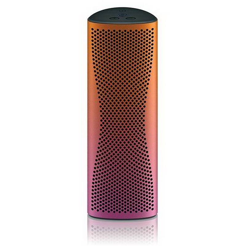 Выглядит KEF MUO как цилиндр. Форма нескучная, оригинальная, привлекает внимание. Гаджет можно спрятать в мягкий чехол и повесить с помощью карабина на ремень или еще куда. Весит немного – всего 800 раммов, зато стиля в ней предостаточно. Создатели KEF MUO вооружили свое детище двумя модулями для беспроводной связи с источником звука. Во-первых, это известный всем Bluetooth, а во-вторых – NFC. Bluetooth поддерживает протокол aptX, который позволят передавать звук в CD-качестве (впрочем, для пользователей техники Apple это неактуально), а NFC пригодится, если вы решите синхронизировать друг с другом две колонки. При этом одна будет воспроизводить левый канал, а другая – правый, создавая в итоге стерео-панораму. Также вы можете использовать аудио-шнур.