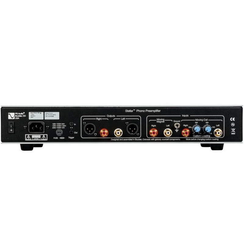 Фонокорректор обладает двумя входами RCA, соответственно, для MM- и MC-картриджей, причем нагрузку для картриджей (согласование по импедансу/емкости), коэффициент усиления и требуемый вход можно выбрать прямо со штатного пульта ДУ. Модель станет идеальным решением при подключении к виниловому проигрывателю с двумя предустановленными тонармами, использующими головки звукоснимателя, соответственно, с подвижным магнитом и подвижной катушкой. На тыльной панели PS Audio Stellar Phono помимо входов для картриджей присутствуют несимметричный и балансный выходы, а также триггерные разъемы. Для вертушек с головками звукоснимателя с подвижной катушкой имеются два регулятора, плавно изменяющие сопротивление нагрузки для левого и правого каналов.