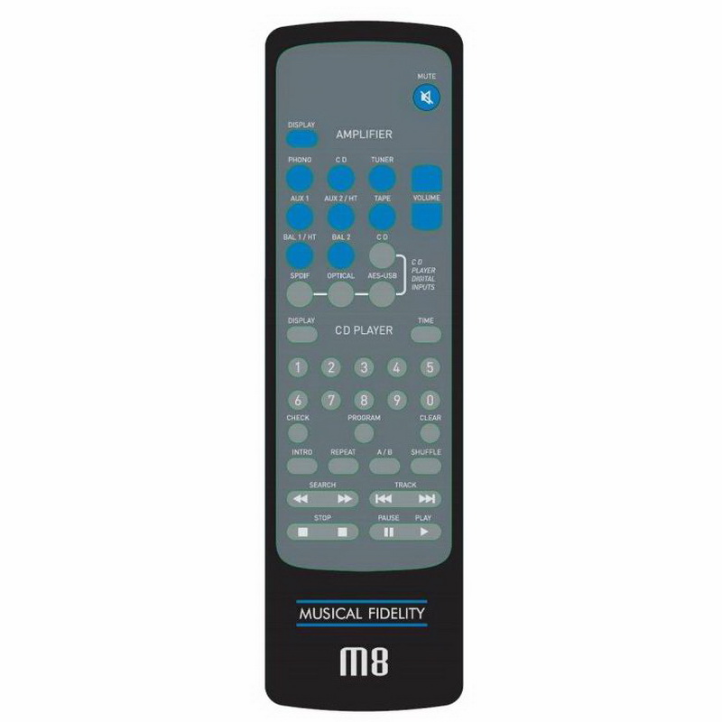 Предусилитель Musical Fidelity M8Pre весит 17 кг, что объясняется усиленным стальным шасси и конструкцией «двойное моно». Каждый канал питается от собственного 350-ваттного трансформатора, фильтра и стабилизаторов, за счёт чего удалось получить переходное затухание -96 дБ (1 кГц). Схемотехника полностью балансная, в сочетании с двухполярным питанием она обеспечивает эффективное подавление любых помех, как внутренних (шумов и наводок), так и проникающих по питающей сети. Предусилитель комплектуется пультом ДУ, универсальным для всей серии M8