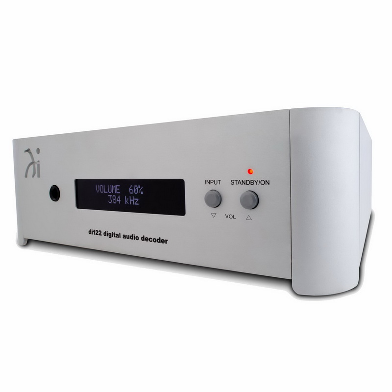 USB-ЦАП Wadia DI122 выполнен в компактном и стильном корпусе. Новинка оборудована пятью цифровыми входами: портом USB-B, двумя оптическими и двумя коаксиальными интерфейсами. При этом через USB-порт конвертер способен принимать PCM-сигнал в разрешении до 32 бит/384 кГц, а также формат DXD с частотой дискретизации 352,8 или 384 кГц, плюс DSD64/128. Что касается остальных входов, то на них можно подать сигнал в качестве до 24 бит/192 кГц. Для питания модели di122 используется внешний комплектный адаптер с выходным напряжением 5 В. Среди прочих особенностей новинки отметим интегрированный усилитель для наушников и удобный двухстрочный дисплей, на котором отображается активный вход, уровень громкости, частота дискретизации сигнала и прочие параметры.