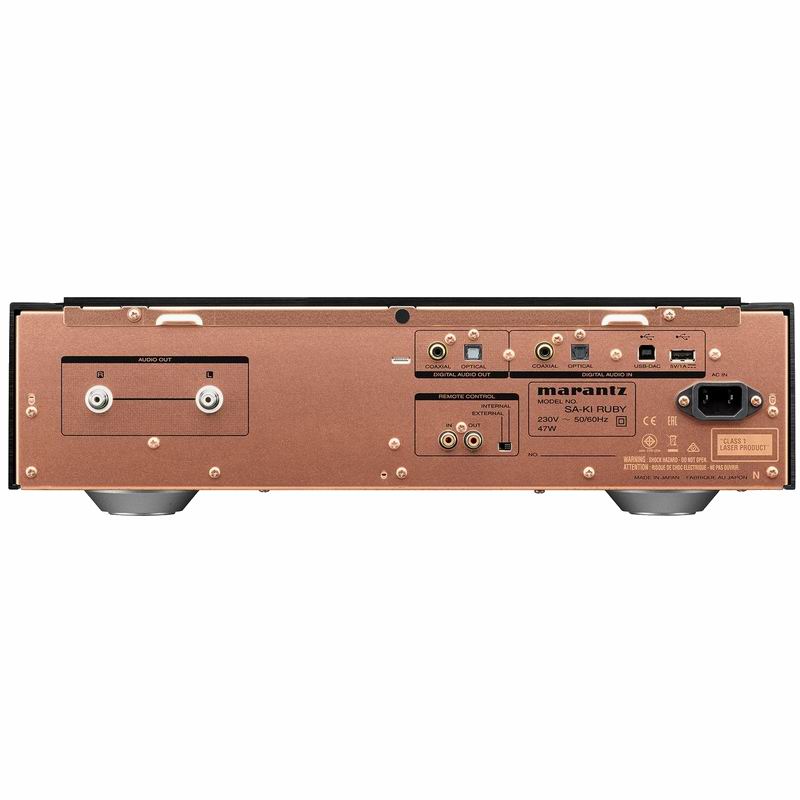Проигрыватель Marantz SA-KI Ruby является промежуточным между моделями проигрывателей SA-14S1 и SA-10, и можно заметить что в обоих моделях многое взято от флагманской линейки. Внутри Marantz SA-KI Ruby установлен привод дисков SACDM-3, созданный исключительно для аудио и воплотивший более чем 35-летний опыт инноваций Marantz в цифровых технологиях. Новый механизм может читать SACD, CD и компиляции файлов на CD-ROM или DVD-ROM, кроме этого SA-KI Ruby оснащен асинхронным USB входом, способным принимать форматы с разрешением до PCM / DXD 384kHz/32bit и DSD11.2MHz. Технология Marantz Musical Mastering повышает разрешение входных цифровых сигналов, доводя его до однобитового потока DSD11.2MHz – для точности и чистоты аудио, позволяя получать аналоговый выход с помощью простейшего фильтра звуковых частот.