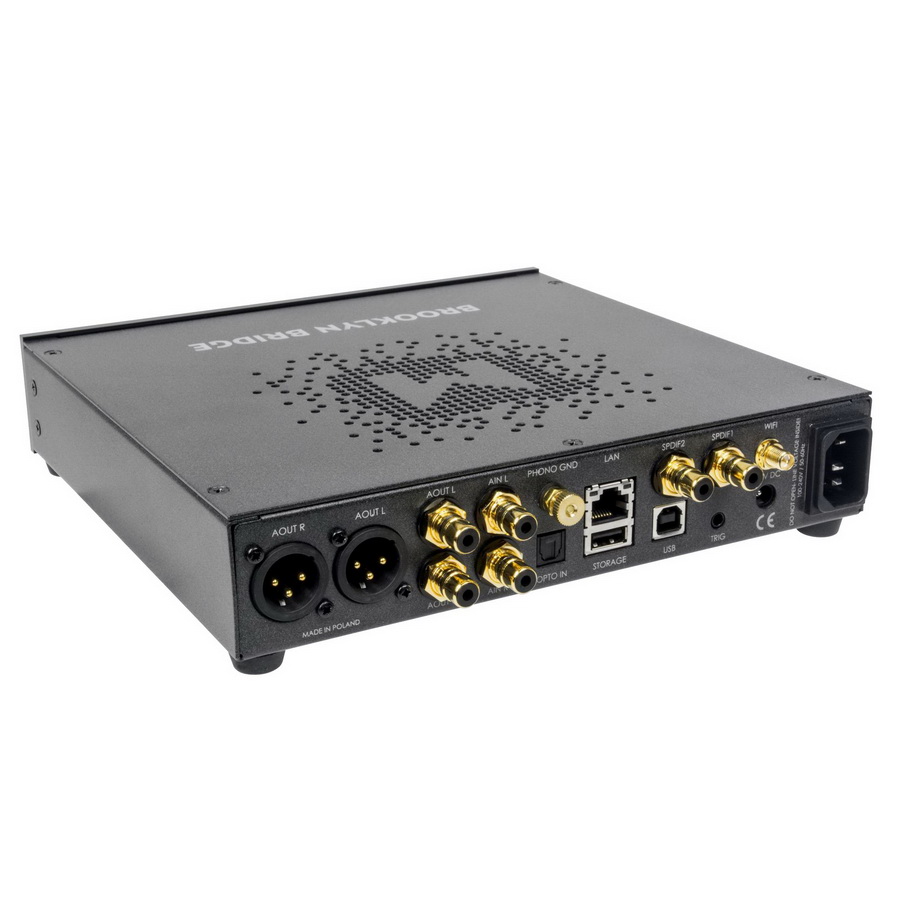 Новый потоковый плеер Mytek Brooklyn Bridge абсолютно идентичен Mytek Brooklyn DAC+ с точки зрения аудиосхем и производительности, но имеет встроенный сетевой Streamer. Цифровой вход AES / EBU заменен сетевым разъемом Ethernet, антенной WiFi и портом USB для внешнего жесткого диска. Устройство так же включает в себя функцию аналогового предусилителя со входом линейного уровня плюс имеет Phono-корректор MM и MC.