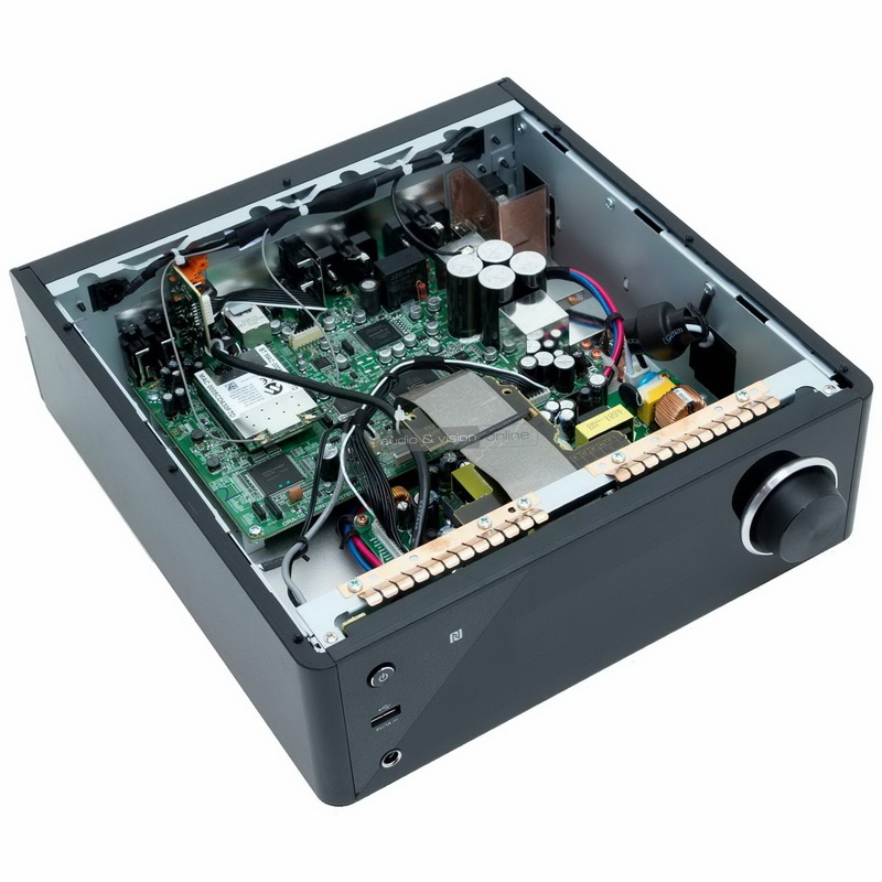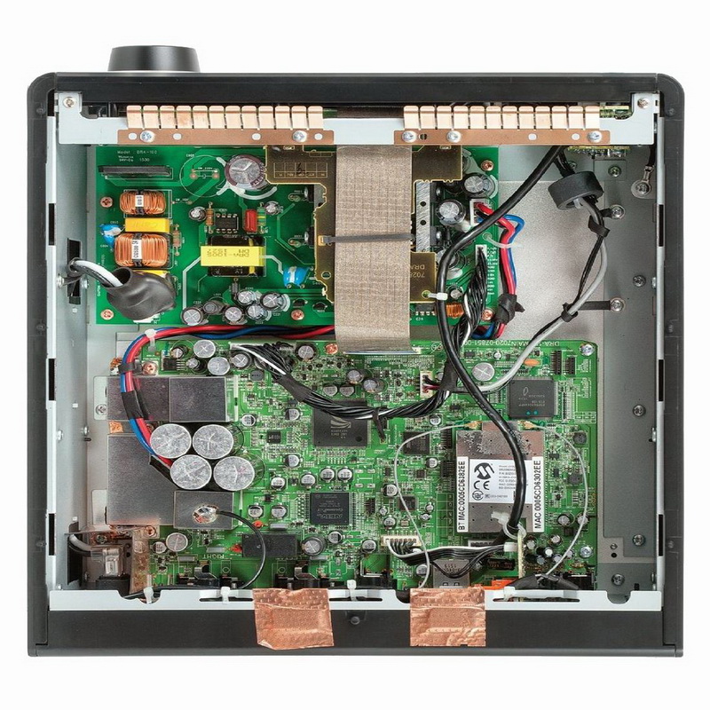 Информации о внутреннем устройстве Denon DRA-100 немного. Известно, что усилитель мощности у него работает в классе D, он построен по технологии DDFA на чипсете CSRA6601/CSRA6600 от компании CSR, той самой, что владеет сейчас правами на кодек aptX. Выходные каскады оконечника дискретные, что позволило снизить искажения и шумы.