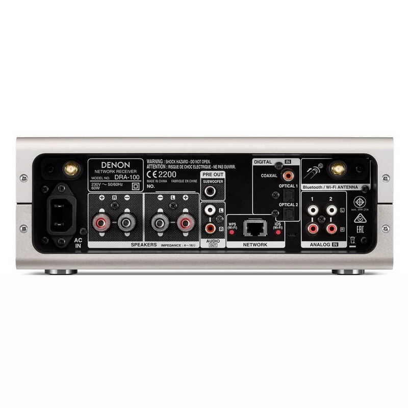 Denon DRA-100 поддерживает современный сетевой функционал, и может воспроизводить музыкальные файлы с доступных сетевых устройств во всех популярных форматах, в том числе PCM HD 24 бит / 192 кГц (FLAC, WAV, AIFF) и DSD 5,6 МГц. Подключение к сети возможно как по кабелю, так и по Wi-Fi, кроме того ресивер поддерживает технологии AirPlay и Bluetooth (с NFC). Для обработки цифровых сигналов в Denon DRA-100 используется фирменный DSP AL32, который осуществляет конверсию исходных аудиоданных до 32 бит. Также в аппарате используется улучшенный задающий генератор, что позволило существенно снизить уровень джитера. Музыкальные файлы можно воспроизводить и с портативных носителей, которые подключаются к USB-разъему на передней панели. К этому же порту можно подсоединять и iPod/iPhone.
