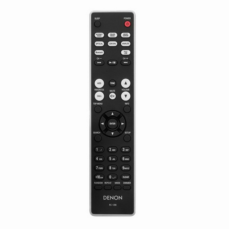 Управление аппаратом возможно в «две руки»: с помощью штатного пульта ДУ (причем не какого-то карточного, а полноценного) и/или бесплатного мобильного приложения Denon Hi-Fi Remote — того же, которым управляются системы семейства CEOL и некоторые другие сетевые аппараты Denon. Есть и под iOS и под Android. Оно способно практически полностью заменить традиционный пульт, поскольку не только позволяет выбирать источники (Интернет-радио, USB, медиасерверы, файлы на смартфоне или входы), но и регулировать громкость, тембр по высоким и низким частотам (по умолчанию включен режим Source Direct, поэтому регулировка тембров недоступна), а также осуществлять другие настройки.