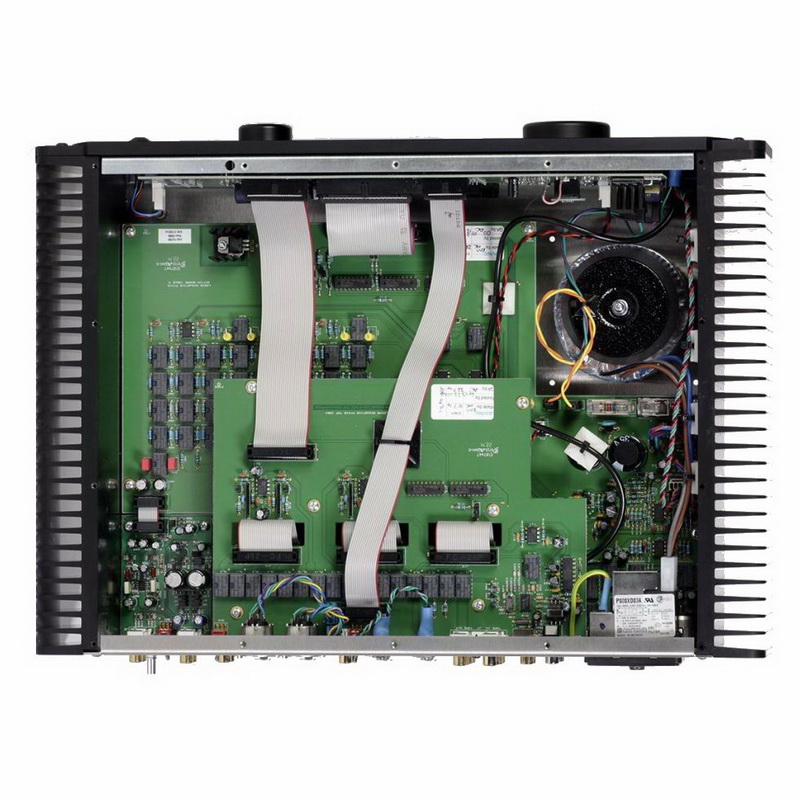 Аналоговая коммутация представлена двумя парами балансных входов и пятью - небалансных. Один из небалансных входов предназначен для подключения AV-процессора или ресивера - сигнал с этого входа не меняется регулятором громкости. Очень удобная особенность для интеграции многоканальной аудиосистемы для домашнего кинотеатра и стереофонического комплекта с целью совместного использования единой фронтальной пары акустики.