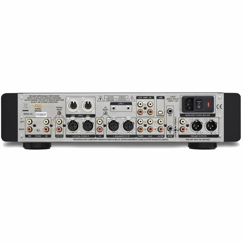 Кроме того, в качестве опции для Leema Acoustics Pyxis II предлагается фонокорректор для работы с картриджами как с подвижным магнитом (MM), так и с подвижной катушкой (MC). Для подключения к усилителю мощности предусмотрены как балансные XLR, так и небалансные RCA выходы. Причем, есть возможность сконфигурировать эти выходы как обычные для предварительного усилителя регулируемые, либо как линейные при регулировке громкости звучания усилителем мощности по шине LIPS.