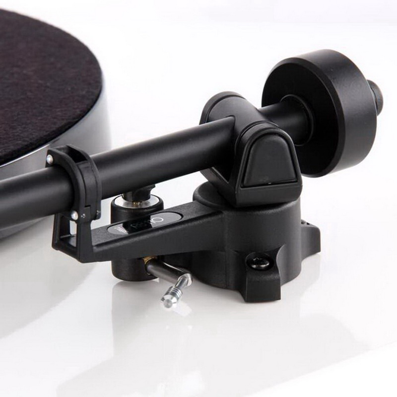 Закрепленный на тонарме картридж Rega Carbon представляет собой модифицированную версию популярной бюджетной головки Audio-Technica AT-3600L. Он отличается применением иглодержателя из углепластика (отсюда и слово Carbon в названии), а также конической заточкой иглы. Чувствительность составляет 2,5 мВ, рекомендуемая прижимная сила – от 1,5 до 2,5 граммов.