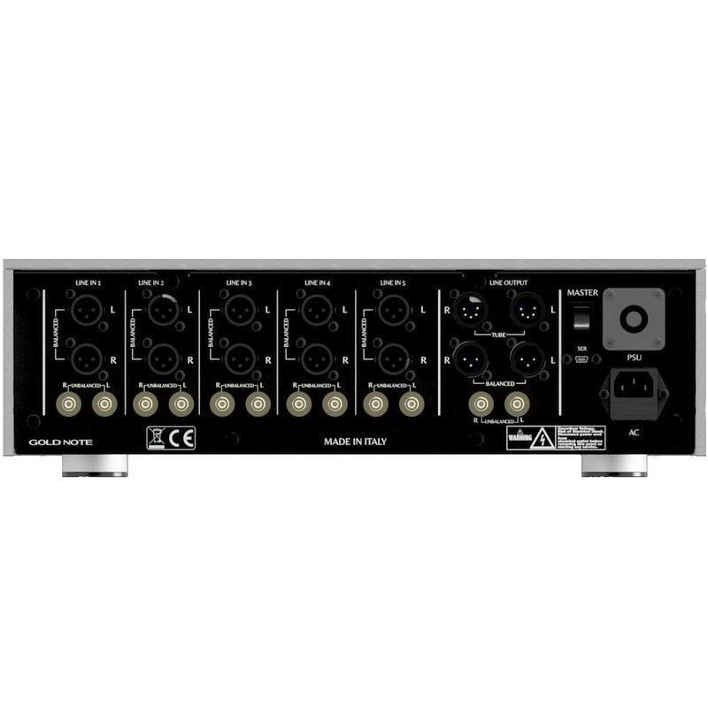 Gold Note P-1000 имеет десять входов, пять из которых полностью сбалансированы XLR, и пять несбалансированных RCA. Предусилитель также имеет сбалансированный XLR и несбалансированный выход RCA и порты для подключения различных внешних аксессуаров.