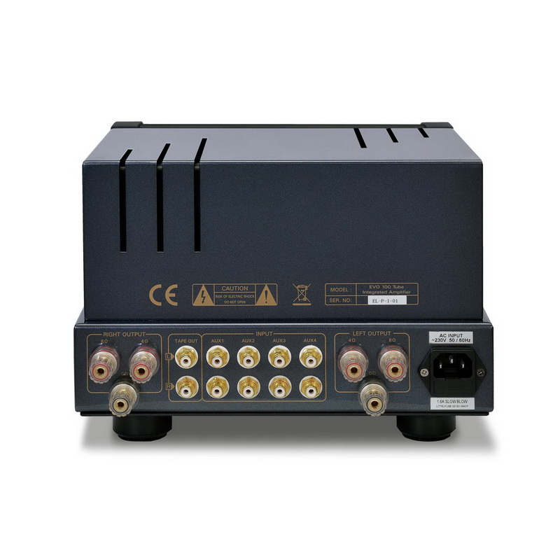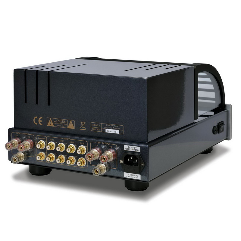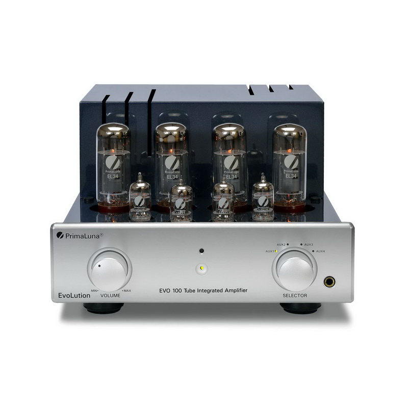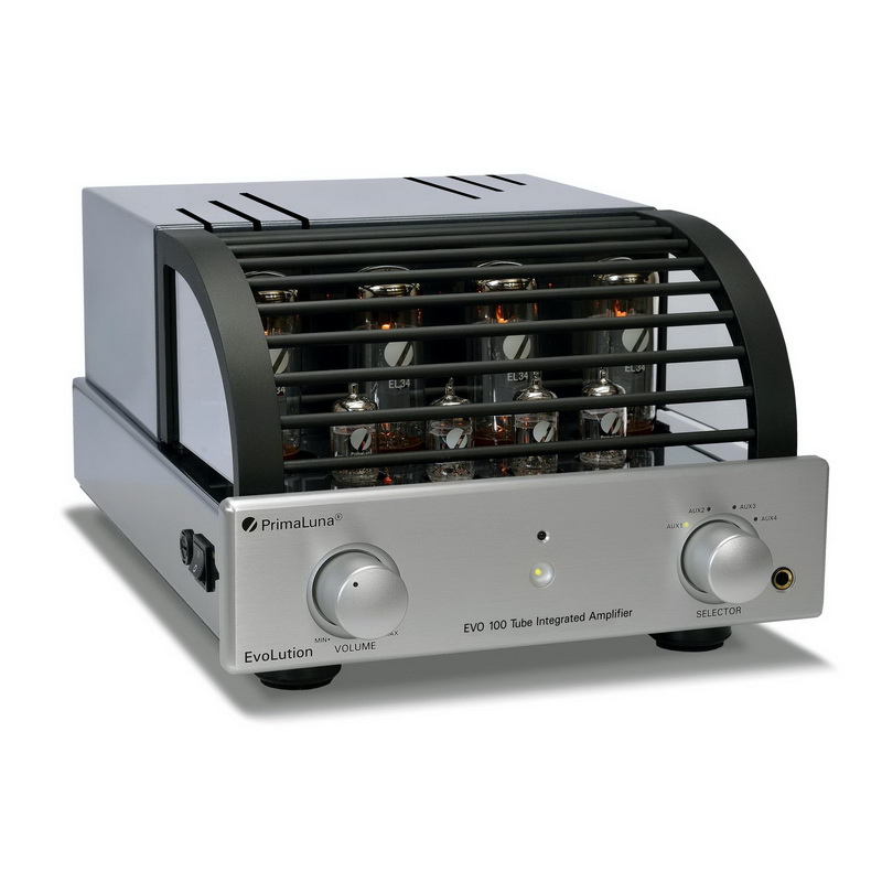 PrimaLuna EVO 100 Integrated оснащен четырьмя парами входных RCA-разъемов, управление моделью доступно в том числе и с металлического пульта дистанционного управления. Усилитель получил лицевую панель ручной полировки, выполненную в черном или серебристом цветах и дополненную легкосъемной решеткой, защищающей лампы.