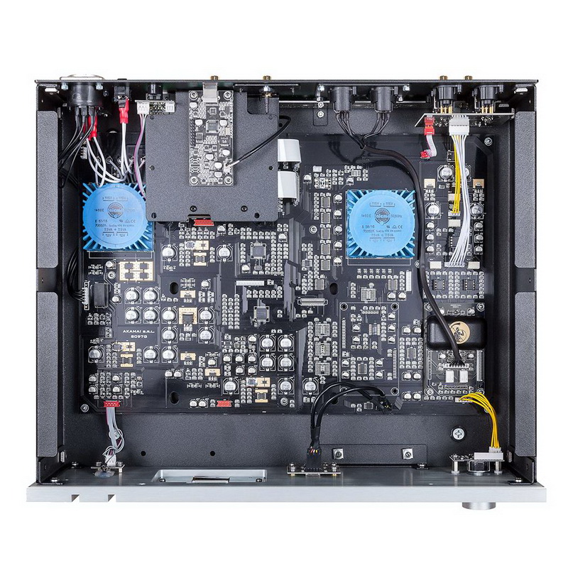 Инновационная уникальная модульная конструкция позволяет выполнять различные внешние обновления, в том числе ламповые каскады класса A, внешний индуктивный блок питания, плату предусилителя и аналоговый стереовход. DS-1000 имеет отличную механическую конструкцию, изготовленную из цельной обработанной стали и толстых алюминиевых панелей, чтобы гарантировать низкочастотный резонанс и магнитное инерционное поле.