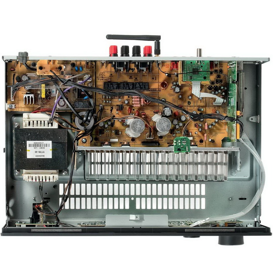 С фирменным протоколом MusicCast к Yamaha R-N303 можно подключать до сорока совместимых устройств (по Wi-Fi, Bluetooth или AirPlay – на выбор: технология MusicCast обеспечивает трансляцию музыки в разных комнатах вашего дома, воспроизводящейся с любого источника, подключенного, например, к Yamaha R-N303, даже в том случае, если сам источник технологию MusicCast не поддерживает). А если у вас есть умные колонки Amazon Echo или EchoDot – станут доступны все прелести голосового управления устройством с помощью ассистента Amazon Alexa. Внутри стерео ресивера Yamaha R-N303 все комплектующие организованы по принципу low-impedance design: минимизация пути аудио-сигнала, расположение силового трансформатора максимально близко к блоку усилителя (для минимизации потерь). Вообще, после снятия верхней крышки (см. фото) Yamaha R-N 303 мы недоумевали: то, что мы увидели, было явно из более высокой ценовой категории.