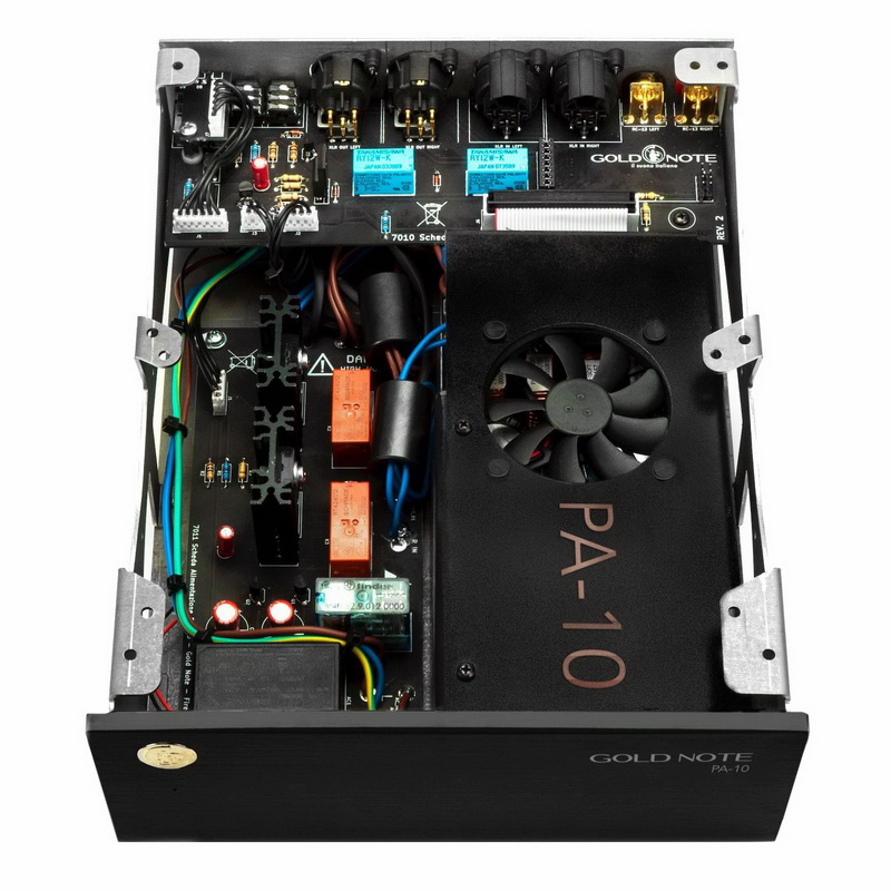 Итальянская фирма Gold Note представляет оконечный стереоусилитель PA-10. Модель мощностью 75 Вт на канал при 8 Ом нагрузки предназначена, в частности, для работы в паре с выпущенным в этом году ЦАПом DS-10. PA-10 соответствует габаритам DS-10: компактный корпус новинки имеет размеры 220x80x260 мм. Естественно, что эти два устройства получили дополняющий друг друга дизайн.