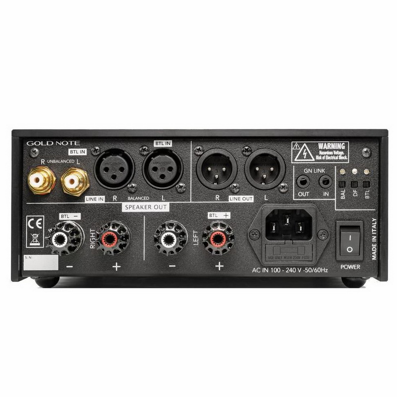 В Gold Note PA-10 предусмотрена как балансная XLR, так и небалансная RCA входная коммутация, а фирменная запатентованная технология GN LINK позволяет модели работать в режиме Master-Slave. В этом случае соединенные ЦАП DS-10 и оконечник PA-10 при включении и выключении ведут себя, как одно устройство.