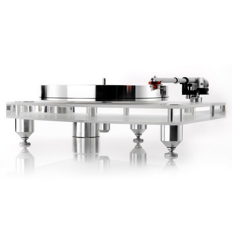 Разница между моделями 2015 и 2035 на первый взгляд невелика — она сводится к толщине акриловой плиты стола (25 и 33 мм соответственно) и разнице в габаритах и весе основного диска (3,7 кг у младшей модели и 6 кг у старшей). Казалось бы, не такие это и существенные различия, но на практике разница может (да и должна) оказаться существенной. Как минимум почти вдвое более тяжелый диск совершенно точно повлияет на поведение и работу привода, а значит, и на звук как таковой.