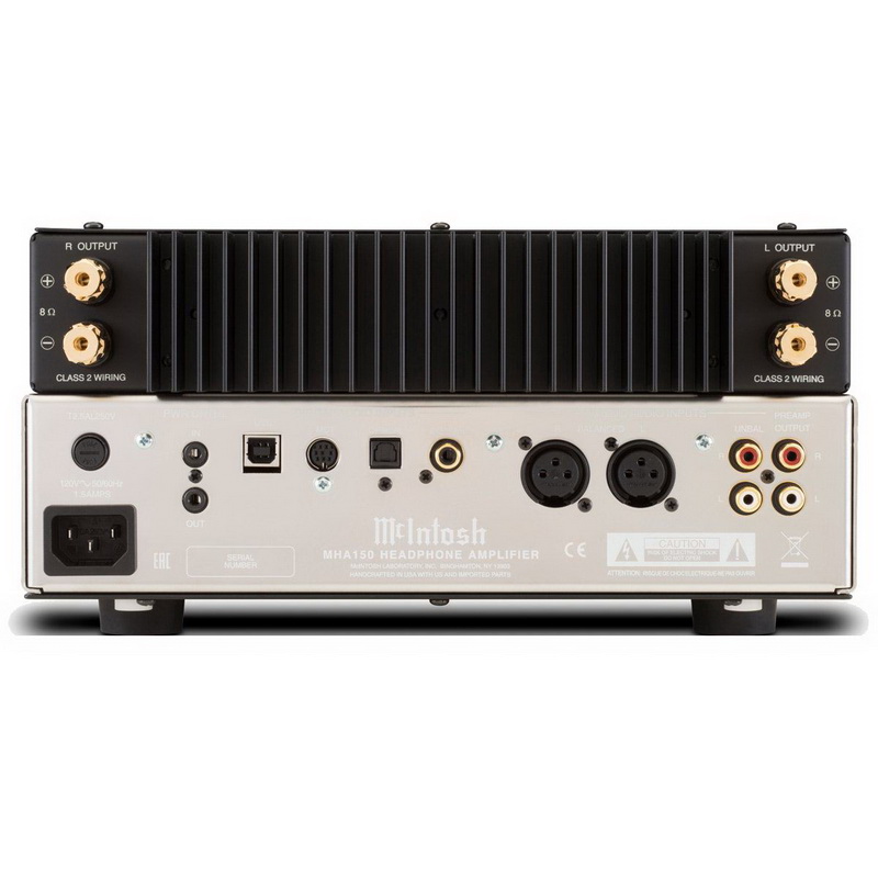 Выходной мощности в 50 Вт вполне достаточно, чтобы McIntosh MHA150 справился с любыми настольными или небольшими полочными акустическими системами, для чего на задней панели размещены две пары акустических клемм. Запатентованная технология Power Guard®, установленная в аппарате, рассчитана на предотвращение ситуаций, в которых могут быть повреждены наушники или подключённые акустические системы. Пятиступенчатая система Bass Boost Control позволяет подстраивать итоговое звучание под свой вкус. Усилитель выполнен в классическом дизайне с применением тех же самых материалов, что и в остальных продуктах компании.