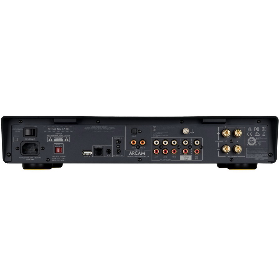 В усилитель Arcam A5 встроен новейший адаптивный кодек Bluetooth aptX. Это может обеспечить потоковую передачу 24-битного аудио высокой четкости с вашего смартфона, планшета или другого устройства с поддержкой Bluetooth. Он также может подключаться к наушникам Bluetooth, что является полезным удобством для прослушивания поздно вечером. Усилитель Arcam Radia A5 оснащен широким диапазоном входных сигналов. Имеется три аналоговых входа RCA, а также аудиокаскад MM. Цифровые входы включают в себя два коаксиальных и один оптический вход. Их можно использовать для подключения проигрывателя CD или Blu-ray непосредственно к ЦАП. Кроме того, имеется USB-вход и проводной разъем Ethernet. Существует также триггерный вход, а также выход предусилителя. Подключение динамиков осуществляется с помощью позолоченных крепежных штифтов.