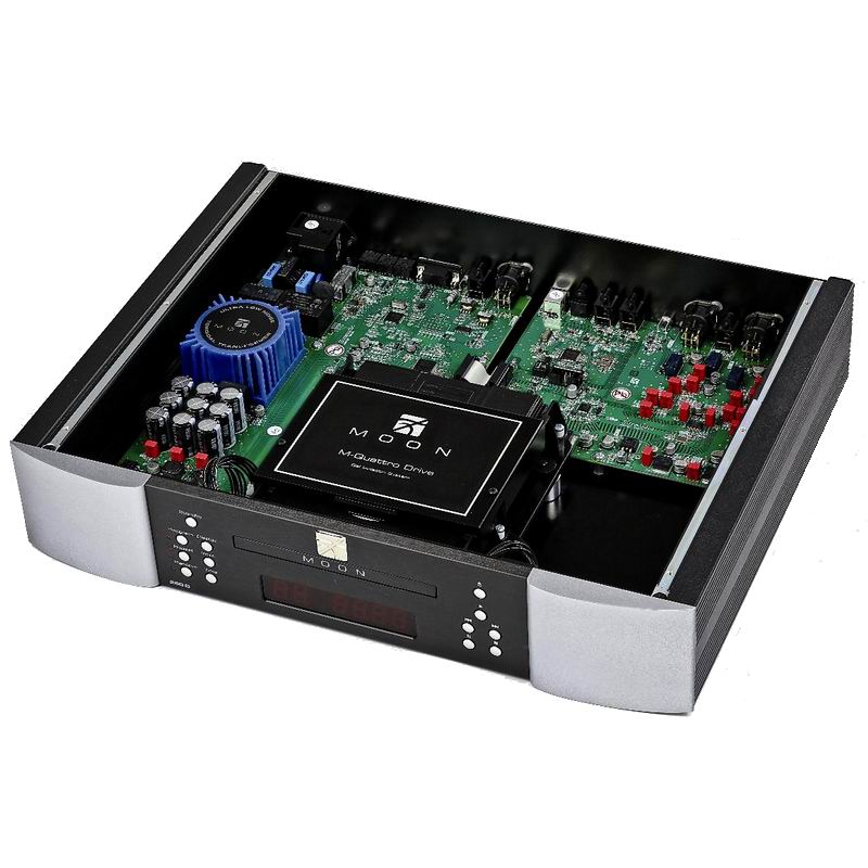 Основа транспорта SimAudio Moon 260D with DAC - тяжелый металлический корпус, фирменный CD-привод MOON Drive (отличается высокой стабильностью и точностью) на четырехопорном подвесе M-Quattro (с гелевыми амортизаторами), защищающий «начинку» от вибраций и ошибок чтения. Блок питания — мощный тороидальный трансформатор и множество емких конденсаторов, дающих стабильный, чистый ток.