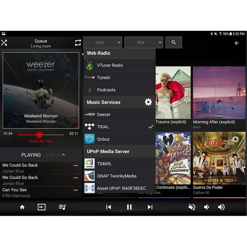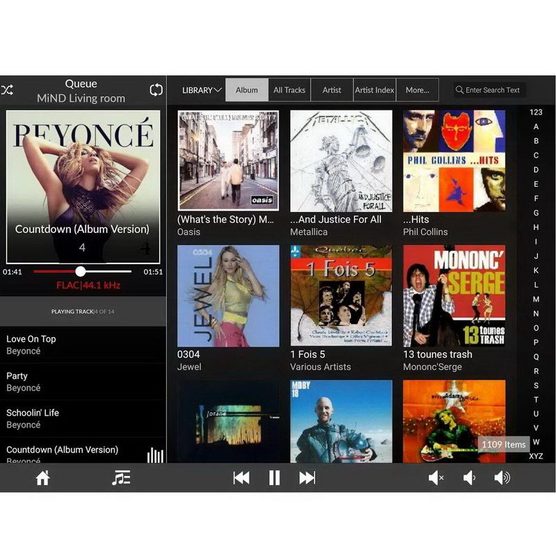 Переходим к следующему функционалу iOS приложения – выбор и воспроизведение композиций. Пользователь может указать желаемый UPnP/DLNA-сервер просто выбрав его из выпадающего меню. Нет никакой необходимость знать какие-либо дополнительные данные об этом сервере. Simaudio специально выполнила процесс выбора и воспроизведения музыки очень простым. У пользователя есть возможность выбрать или найти интересующий его контент, воспроизвести его немедленно или поставить в начало или конец очереди. Или же просто проиграть его следующим номером. После того, как список воспроизведения составлен, пользователь может удалить из него трэки по одному или все сразу, а также изменить порядок воспроизведения. В части выбора и воспроизведения композиций выбор здесь не такой уж и большой, все очень просто. Нельзя не сказать про еще две возможности, которые недоступны при использовании решений сторонних поставщиков, типа JRiver/JRemote – это способность управлять громкостью и возможность выбора активного цифрового входа посредством приложения iOS. Регулировка звука в данном случае идентична управлению с помощью ИК пульта, за исключением того факта, что управляющий сигнал посылается через IP-сеть. В целом я ставлю новому приложению самые высокие отметки за практичность, простоту и, наконец, за предоставление пользователю возможности послушать музыку, не обладая научной степенью в области разработки программного обеспечения.