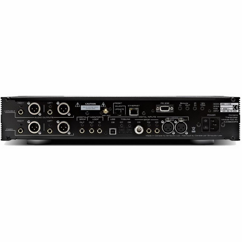 ЦАП SimAudio Moon 380D Streaming DSD DAC поддерживает формат DSD вплоть до DSD256 и PCM вплоть до 384 кГц, оснащен портами USB и Ethernet / WiFi, а также аналоговыми выходами с постоянным и регулируемым уровнем выходного сигнала – выбор используемого выхода зависит оттого, использует ли потребитель предусилитель или подключает ЦАП напрямую к усилителю. SimAudio Moon 380D Streaming DSD DAC позволяет в случае необходимость обновить заводскую прошивку, а также произвести апгрейд аппаратной части.