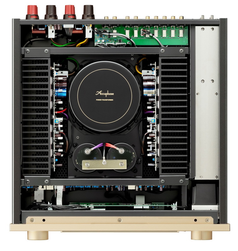 Усилитель Accuphase E-800 обладает блестящей звуковой сценой и музыкальностью, передаёт даже самые тонкие и скрытые нюансы музыки. Внутри корпуса установлены массивные радиаторы обеспечивающие эффективное рассеивание тепла от транзисторов работающих в чистом классе "А". Это позволяет работать им значительно точнее и сохранять свои параметры.