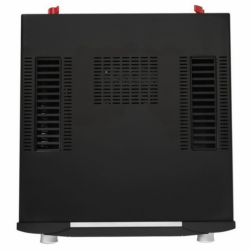 Схема каждого канала усилителя проста и элегантна. Малый размер 12 выходных транзисторов и множества небольших локальных конденсаторов позволяет разместить их близко к усилителю для быстрого переходного отклика при необходимости моментальной подачи питания. Такая надежная архитектура обеспечивает устойчивую номинальную мощность в 200 Вт на канал со стабильностью 2 Ом. Интеграция и расширение системы возможны благодаря предусиленным стереовыходам RCA, работающим в полном диапазоне или с входящим в комплект отключаемым разделительным фильтром-кроссовером второго порядка с частотой дискретизации 80 Гц, который позволяет интегрировать усилитель в 2.1-канальные системы с активными сабвуферами.