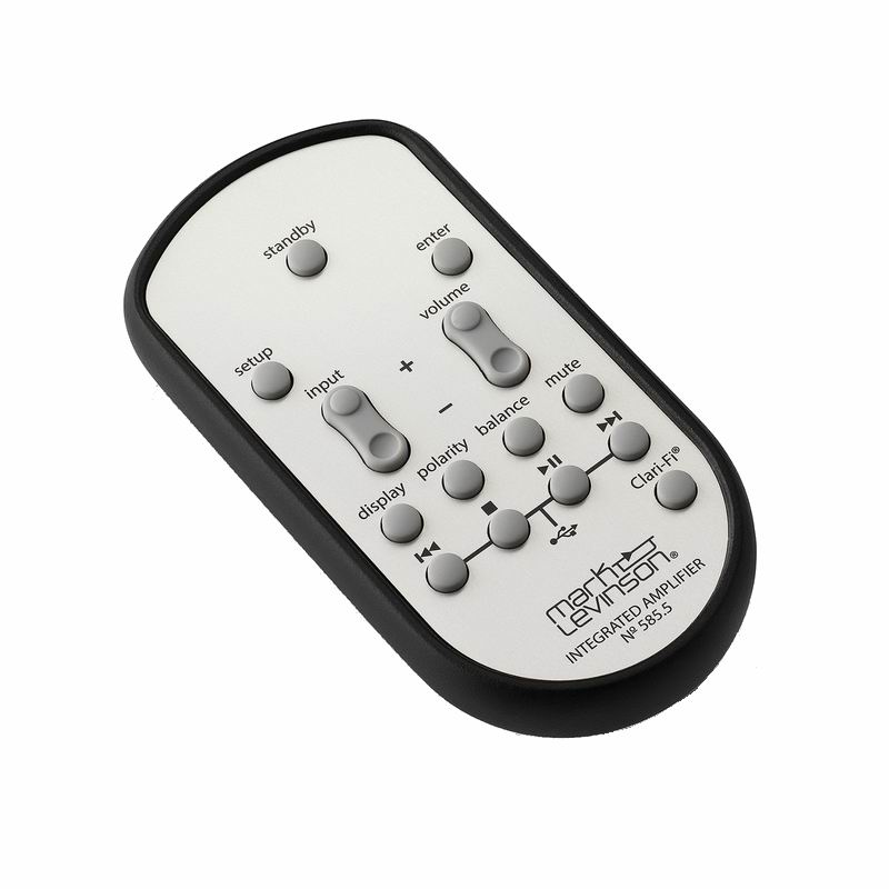 Встроенный ЦАП построен на знаменитом ESS Sabre 32-bit. Он оснащен системой элиминации джиттера и полностью балансный. Аудио процессор Cmedia USB позволяет переносить асинхронные данные в DSD и PCM форматах с частотой до 192kHz/32-bit. У усилителя Mark Levinson № 585.5 есть и стерео выход с фильтром подрезки верхних частот (80Hz) для предусилителя / сабвуфера. Это позволяет ему быть использованным в 2.1-канальной системе. Несмотря на довольно изысканные черты и технические характеристики, Mark Levinson № 585.5 довольно прост в использовании. Им можно управлять, пользуясь регуляторами и функциональными кнопками, которые расположены на передней панели. В комплекте с усилителем также идет пульт управления.