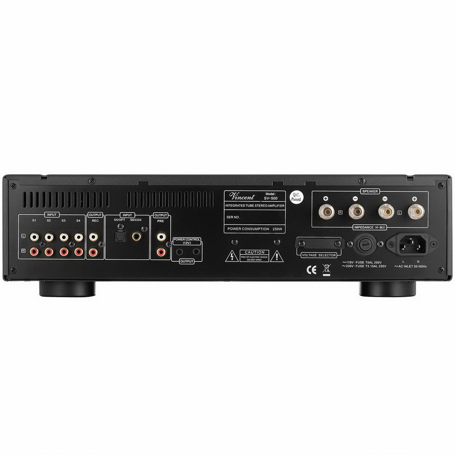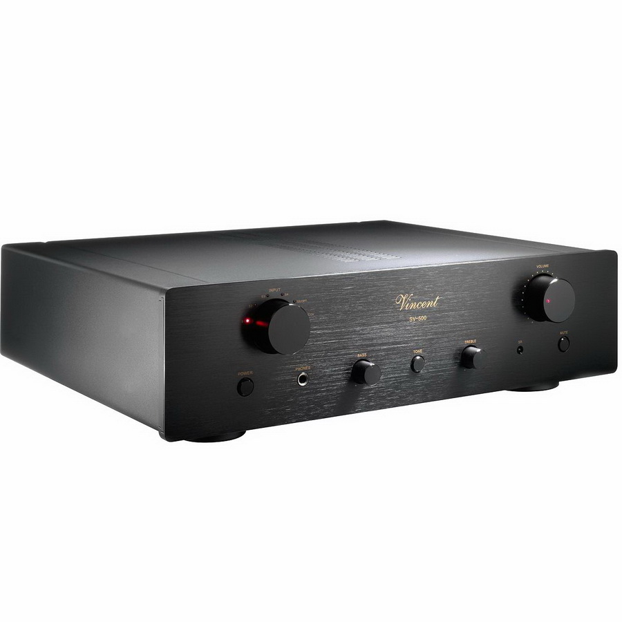Vincent SV-500 номенклатурно принадлежащий к серии Powerline, был разработан на основе крайне удачного в своем жанре усилителя Vincent SV-227. Внешне не сильно отличимый, но более компактный, SV-500 заимствует у своего старшего брата общее схемное решение, располагая, тем не менее, серьёзным отличием в предусилительном каскаде, за счет трёх ламп, одной 12AX7 и двух 6H1. Также аппарат оснащенным солидным тороидальным трансформатором с заявленной выходной мощностью 250 Вт.