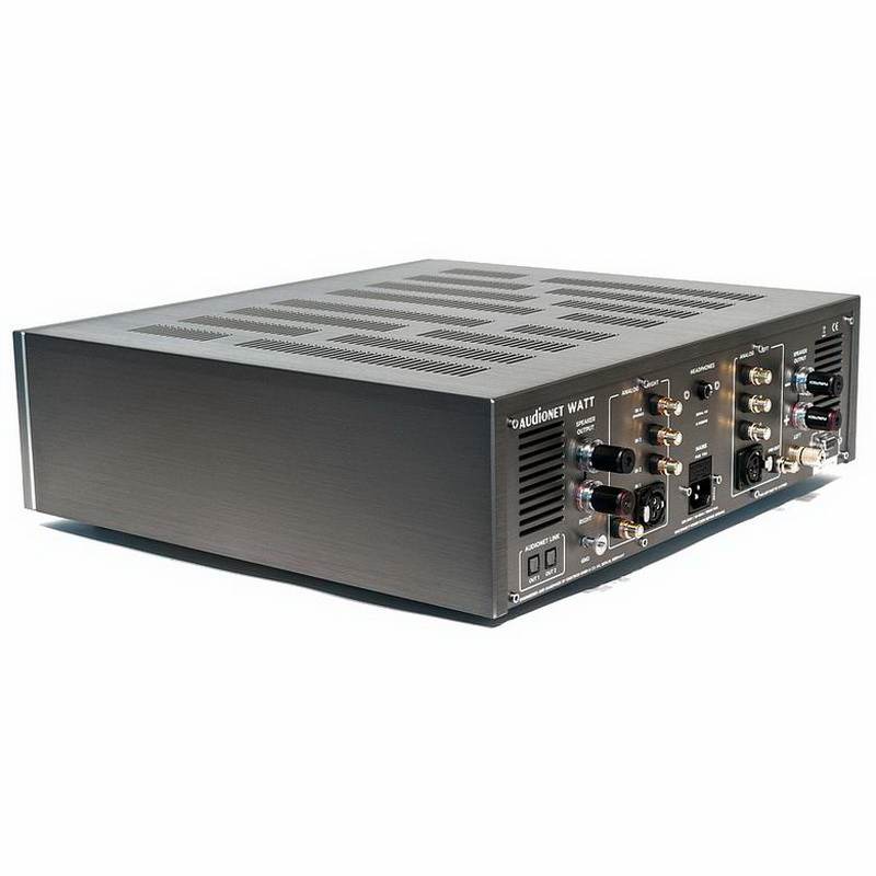 В схеме Audionet Watt учтено все, что может повлиять на качество звука. Коммутация входов выполнена на базе реле с позолоченными контактами, а аудиосигнал передается по одножильным серебряным кабелям. Блок питания аппарата изготовлен на базе тороидального трансформатора мощностью 900 ВА, а суммарная емкость конденсаторов фильтра составляет 96000 мкФ. Выходная мощность Audionet Watt составляет 167 Вт на канал при сопротивлении нагрузки 8 Ом, и возрастает до 284 Вт на канал при подключении 4-омных колонок.