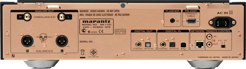 Marantz NA-11S1 оснащен балансными и небалансными выходами, коаксиальными и оптическими входами и выходами, разъемом RS232 для подключения к инсталлированным AV-системам, разъемами для внешней системы управления. Аппарат имеет выход для подключения наушников, выполненный по буферной схеме.