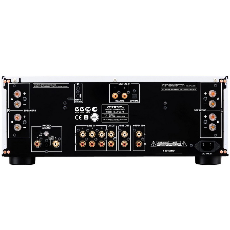 Новейший шумозащитный звуковой модуль DIDRC убирает большие искажения частот, 15000 µF конденсаторы сохраняют достаточную мощность, а эффективная двойная двухтактная схема усиления на трехкаскадных дарлингтоновских транзисторах, работает на уменьшение искажений почти до нулевого уровня. Отдельные ЦАПы Wolfson® на 192 кГц/24 бит повышают производительность для левого и правого каналов. Четыре дискретных режима - интегрированный, усилитель, предусилитель, и разделитель pre-amp/power усилителя, обеспечивают гибкость при интеграции других HI-Fi компонентов. Независимый усилитель для наушников, фонограф эквалайзер, три цифровых аудио входа, четыре аналоговых входа, и позолоченные клеммы говорят о высоком качестве сборки. Превосходная технологическая отделка и внимание к деталям, делают A-9070 достойным серьезного внимания.
