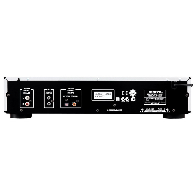 На задней панели Onkyo C-7030 расположены аналоговый стереовыход, коаксиальный и оптический выходы, а также гнезда для внешней системы управления; все контактные поверхности аудиоразъемов позолочены.