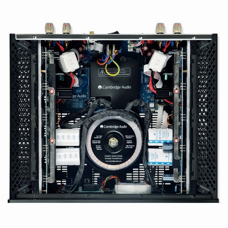 В усилителе Cambridge Audio Azur 851W используется блок питания с двумя тороидальными трансформаторами. Один из них работает на выходные каскады, а другой на входные цепи и все вспомогательные цепи. Такое разделение, являющееся еще одной находкой инженеров компании, позволило свести к минимуму перекрестные помехи, расширить динамический диапазон и получить стабильно высокое качество звука при любой громкости. Буферные входные каскады Terrapin, также разработанные Cambridge Audio, служат для точного согласования усилителя с любыми источниками сигнала. А схема CAP5 защищает аппарат от выбросов постоянного напряжения перегрева, короткого замыкания или ограничения сигнала при превышении им допустимого порогового уровня.
