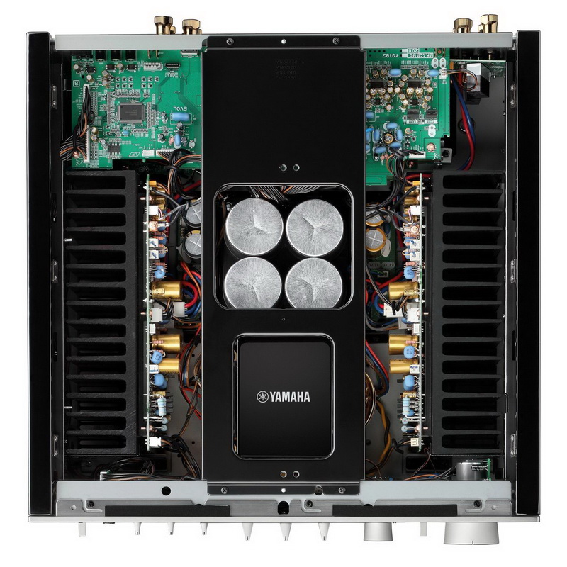 Фронтальная панель устройства целиком повторяет упомянутую выше модель Yamaha A-S3000. На ней размещены разъём для подключения наушников, регуляторы уровня громкости, баланса, низких и высоких частот, а также селектор для выбора источника звука и ещё шесть переключателей. Кстати говоря, все элементы управления выточены из алюминия. Ну а прямо по центру «фасада» находится пара стрелочных индикаторов с двумя режимами работы – VU и PEAC. Новинка располагает семью аналоговыми входами, включая вход фонокорректора и балансные гнёзда с переключаемой чувствительностью. Кроме того, имеется стереовыход Pre Out, позволяющий подключить к аппарату внешний усилитель мощности. Также на задней стенке имеется восемь латунных терминалов, позволяющих подключить две пары акустических систем, расположенных в зонах A и B, или одну методом Bi-wiring.