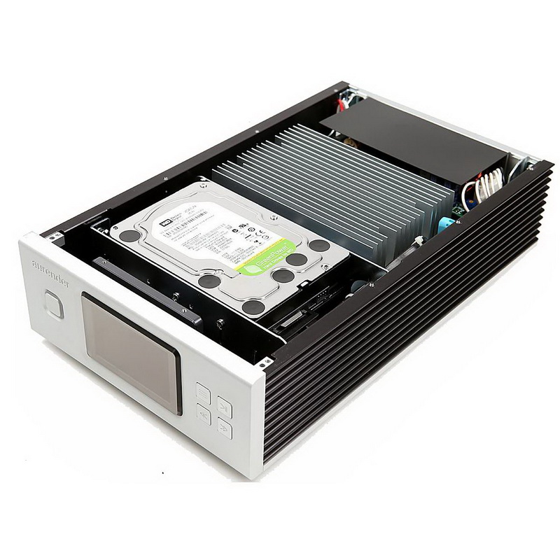 Проигрыватель Aurender X100L использует многие технологии, позаимствованные у флагмана Aurender W20. Внутренние хард-диски надежно закреплены в корпусе и защищены от вибраций. Для кэширования здесь задействована твердотельная память SSD объемом в 120 Гб. После того, как файлы попадут в такой SSD-буфер, жесткие диски автоматически уходят в режим standby, благодаря чему удается увеличить их срок службы и избавиться от различных шумов, связанных с их работой. Высокоскоростной буфер также помогает минимизировать джиттер и решить проблемы с задержками воспроизведения. Последнее особенно актуально при проигрывании файлов по локальной сети с NAS-серверов или при использовании внешних накопителей, подключенных по USB-входу.
