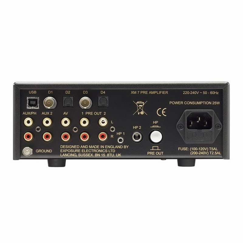 Предварительный усилитель XM7 Pre Amplifier пополнил ряды новой серии XM от Exposure. В числе особенностей данной модели - усилительный фонокаскад для MM картриджа и ЦАП, имеющий пять цифровых входов, аналоговый вход для домашнего кинотеатра с фиксированным усилением и два выхода для наушников.