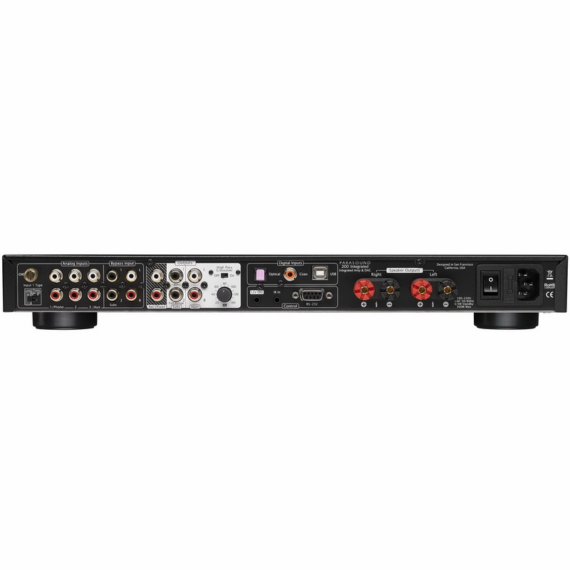 Parasound NewClassic 200 Integrated выдает 2 х 110 Вт на нагрузку в 8 Ом, оснащается фонокорректором ММ/МС, имеет полный набор входов (от RCA до оптики и коаксиала), интерфейс USB. В модуле цифро-аналогового преобразователя у Parasound NewClassic 200 Integrated используются проверенный и хорошо зарекомендовавшие себя микросхемы от Burr-Brown.
