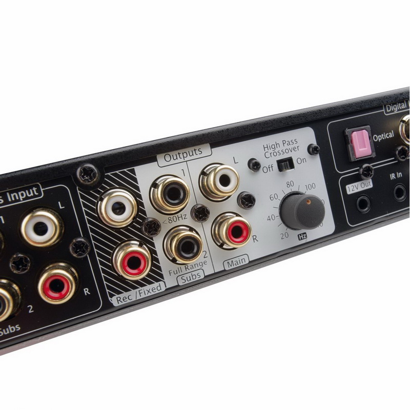 Однако самое интересное — это целых два кроссовера, помогающих без проблем и лишних затрат организовать дельный трифоник. Один из них позволяет отправить на любую активную акустику (к примеру, саб без кроссовера) сигнал от 80 Гц и ниже, а второй обрезает НЧ-составляющую на выходе предусиления с регулируемым порогом 20–140 Гц. Ну а для желающих использовать собственный кроссовер бас-машины, имеется и полнодиапазонный сабвуферный выход. Его, кстати, Parasound в качестве альтернативы предлагает использовать для монофонической озвучки небольшой дополнительной зоны вроде коридора или ванной комнаты.