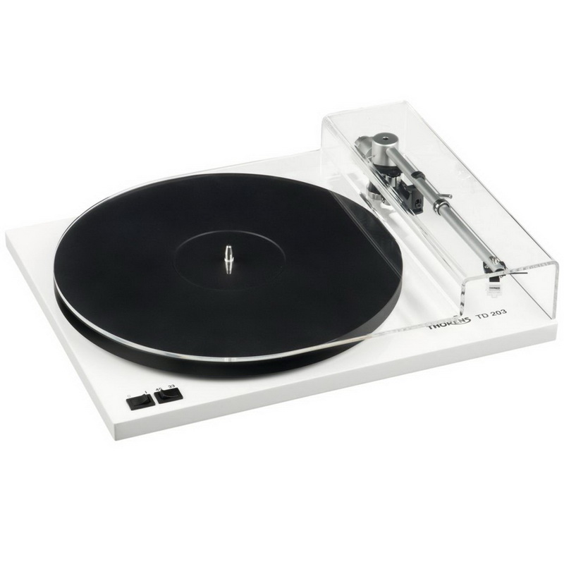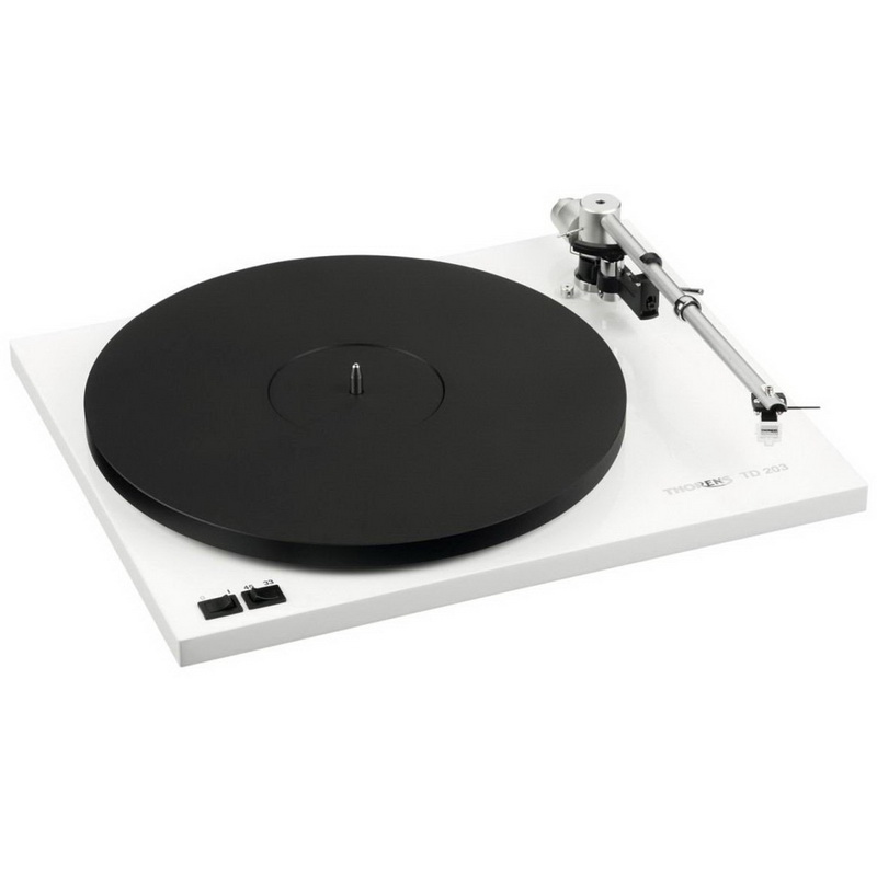 Thorens TD 203 - новинка 2014 года. Новый проигрыватель Thorens TD 203 унаследовал многие черты популярных моделей TD 309 и TD 206, однако отличается более доступной стоимостью. Этот проигрыватель обеспечивает две скорости вращения диска (33,1/3 и 45 оборотов в минуту) с электронным переключением и имеет ручное управление. Опорный диск проигрывателя изготовлен из специального полимерного материала с высоким показателем демпфирования.