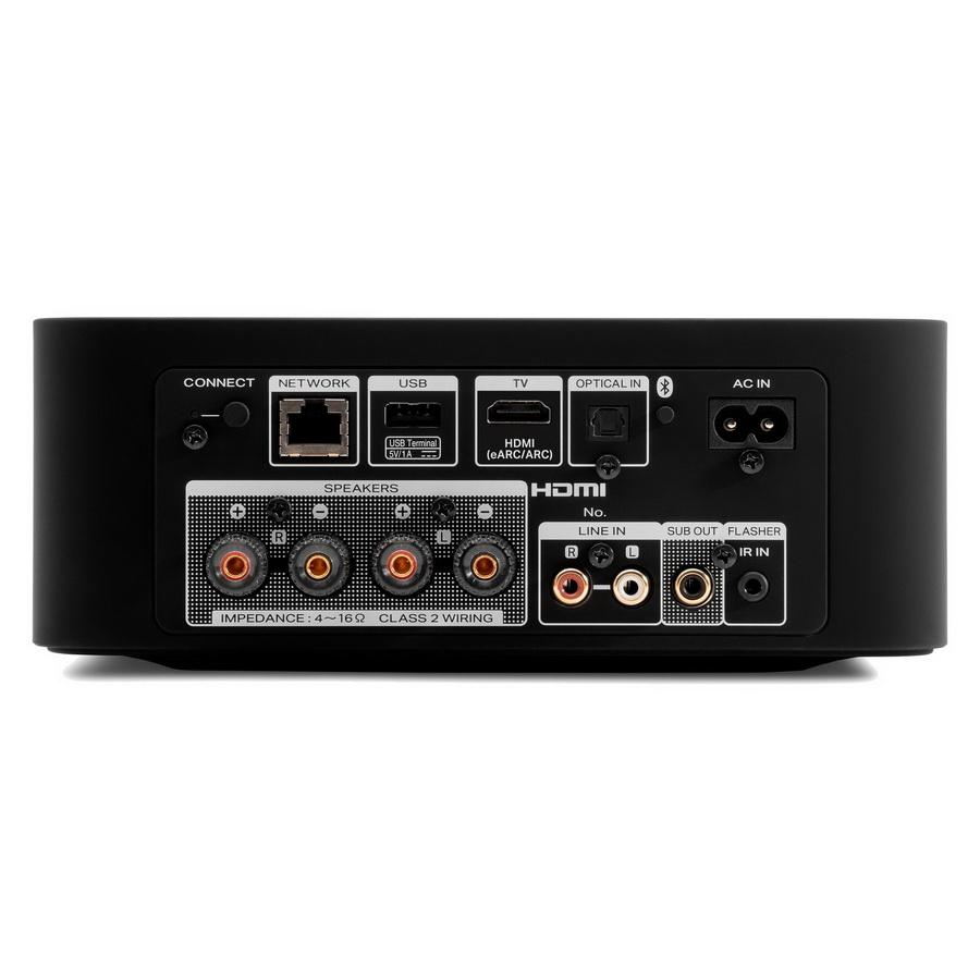 Кроме того, для прямого беспроводного соединения с мобильными устройствами предусмотрен встроенный Bluetooth-модуль. Аппарат поддерживает популярные музыкальные потоковые сервисы и может принимать интернет-радио. Кроме того, новинка по Wi-Fi либо сетевому кабелю поддерживает стриминг и управление со встроенными Airplay 2, Spotify Connect. Также имеется USB-гнездо для подключения флешек и других накопителей с музыкальными файлами и стандартный линейный вход, а наличие входа HDMI с eARC и декодирования Dolby Digital и Dolby Digital + позволяют создать на его базе вполне домашне-кинотеатральный трифоник.